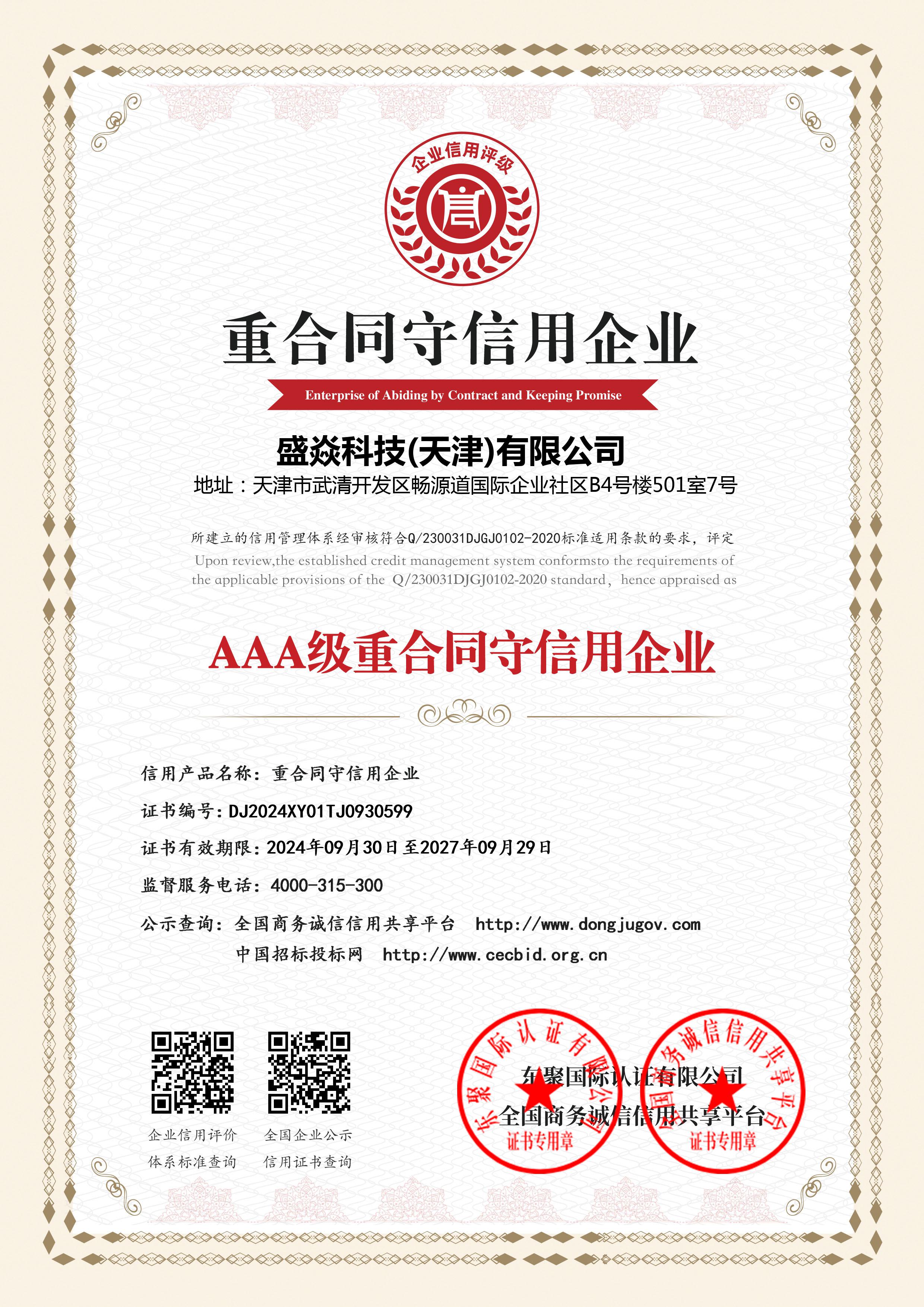 AAA级重合同守信用企业